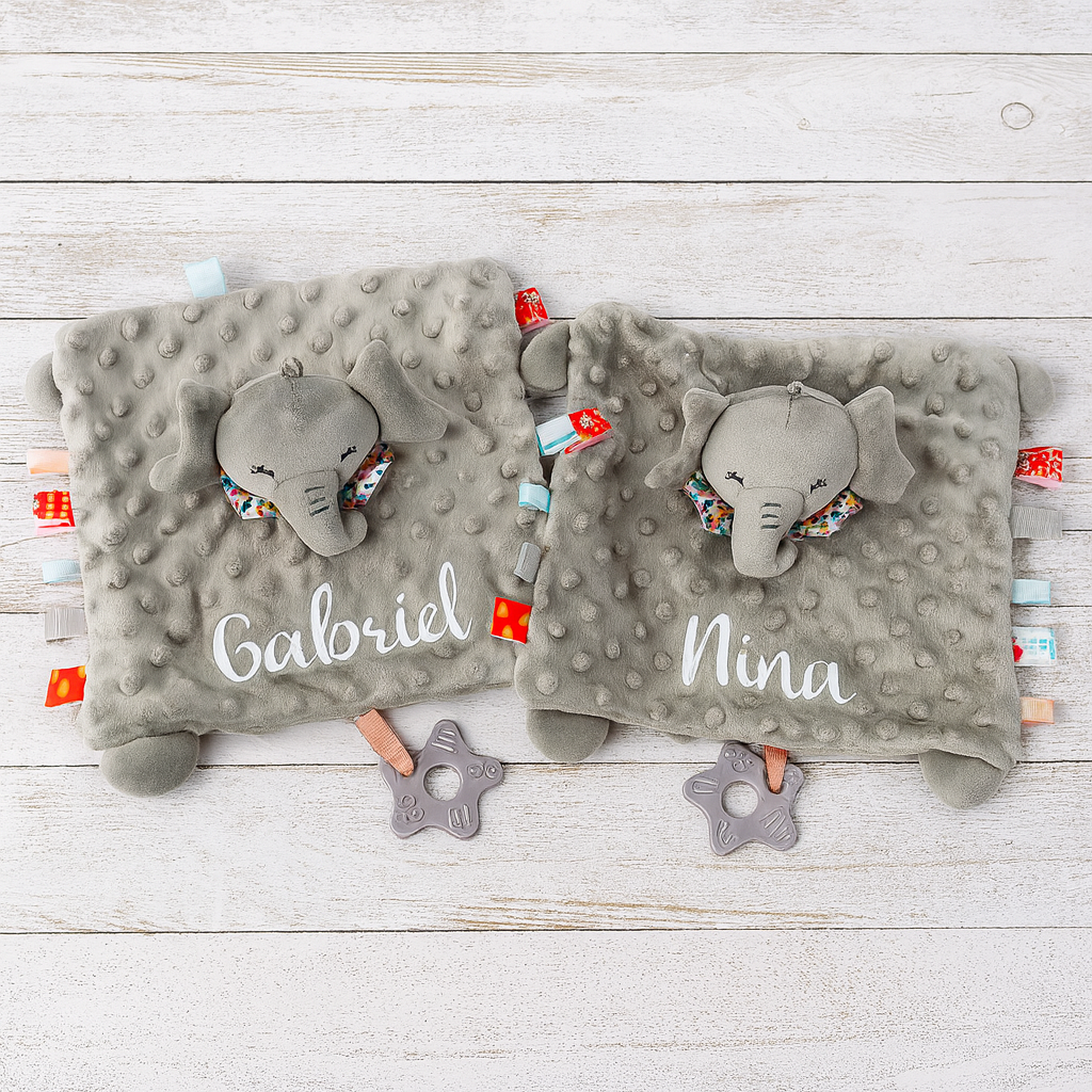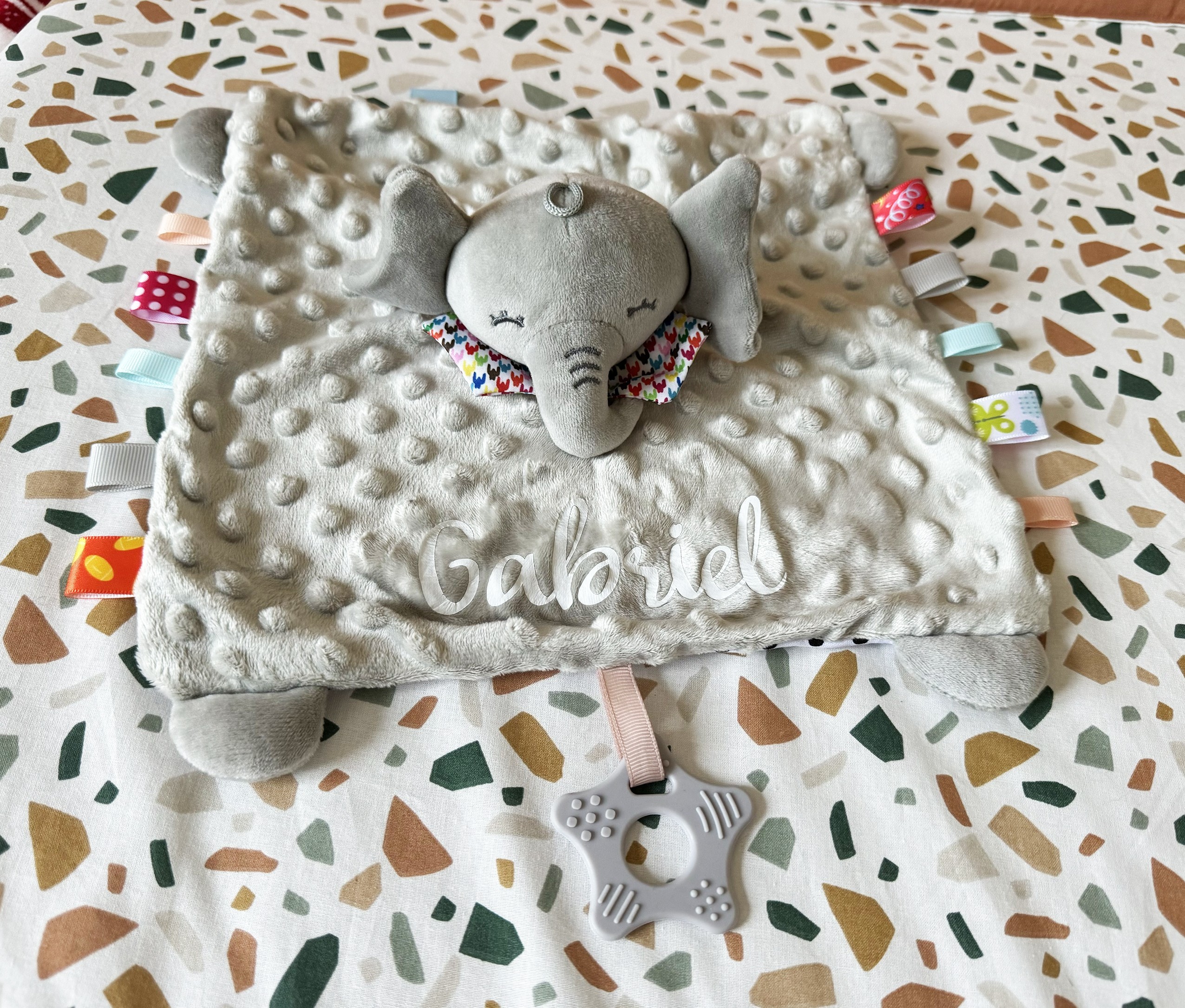 Le prénom de votre enfant rend le doudou encore plus unique (prénom fait par la méthode du flocage).