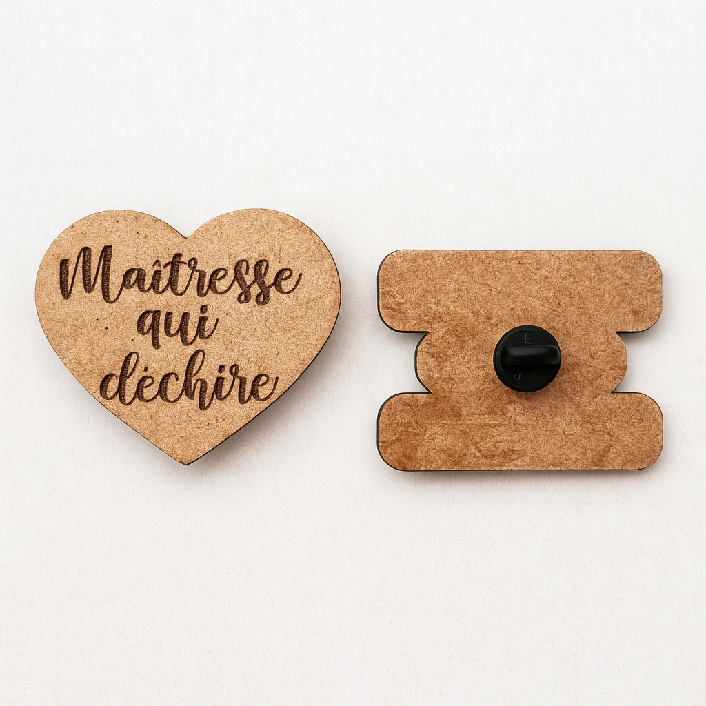 Matière : MDF (bois) + piéce en métal pour le pin's et plastique
