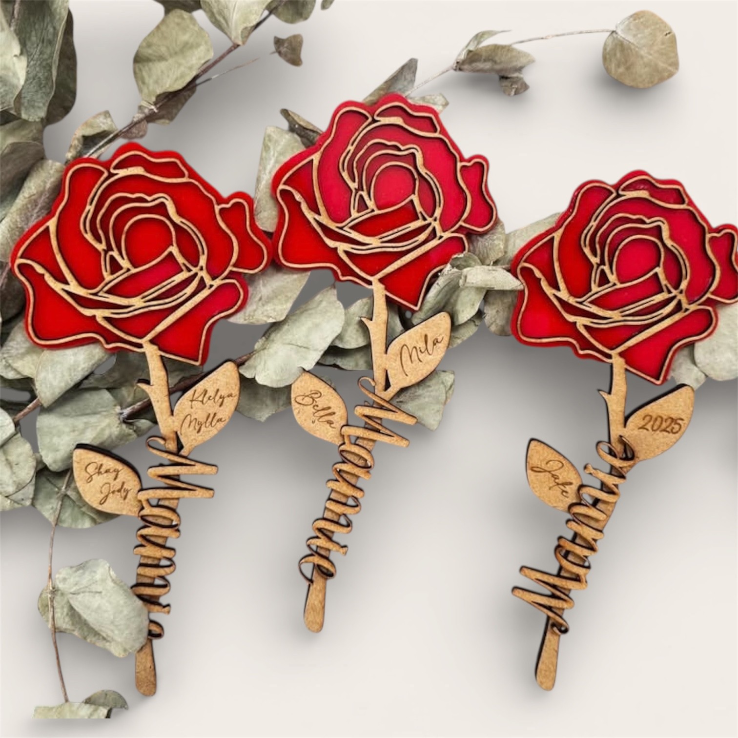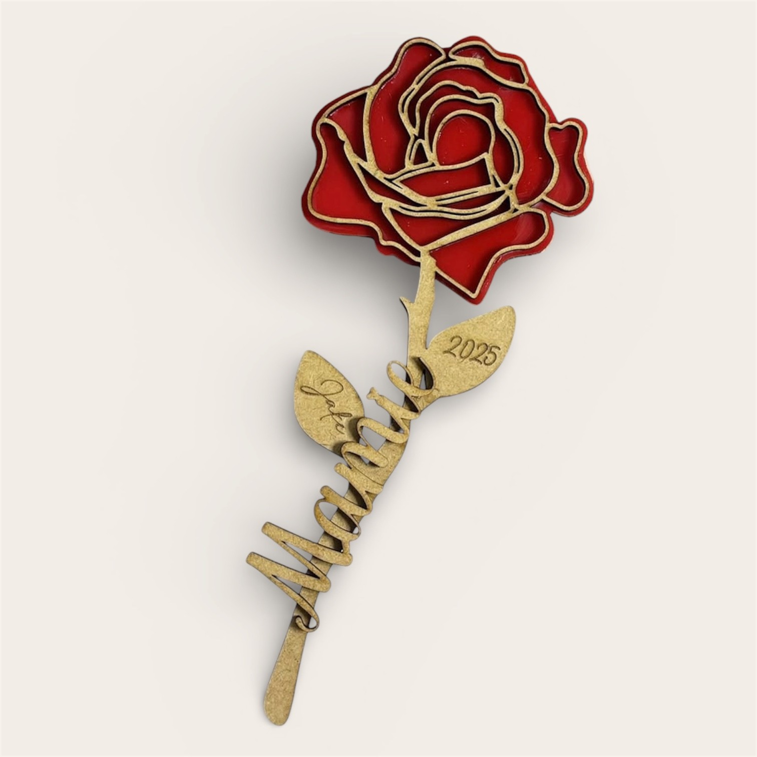 - Prénom(s) des enfants. Ils seront gravés sur les deux pétales de la rose.