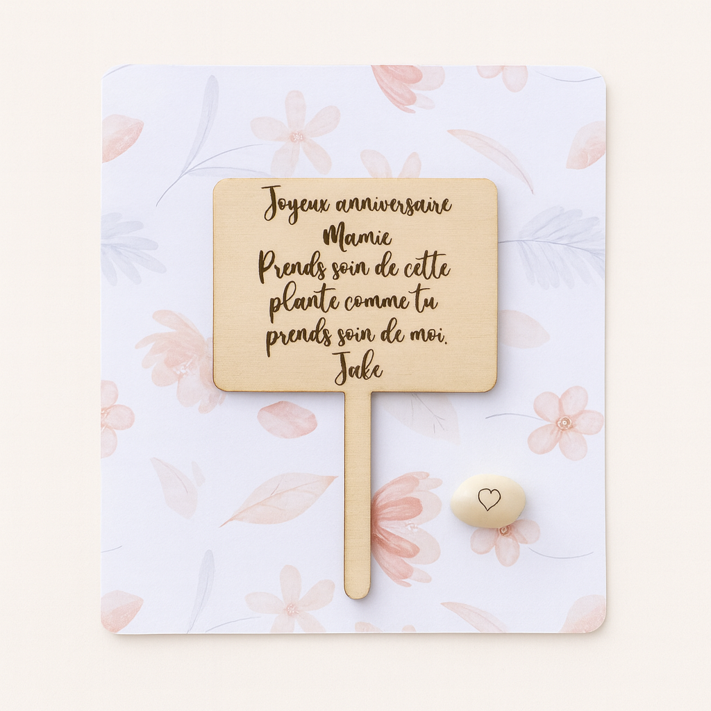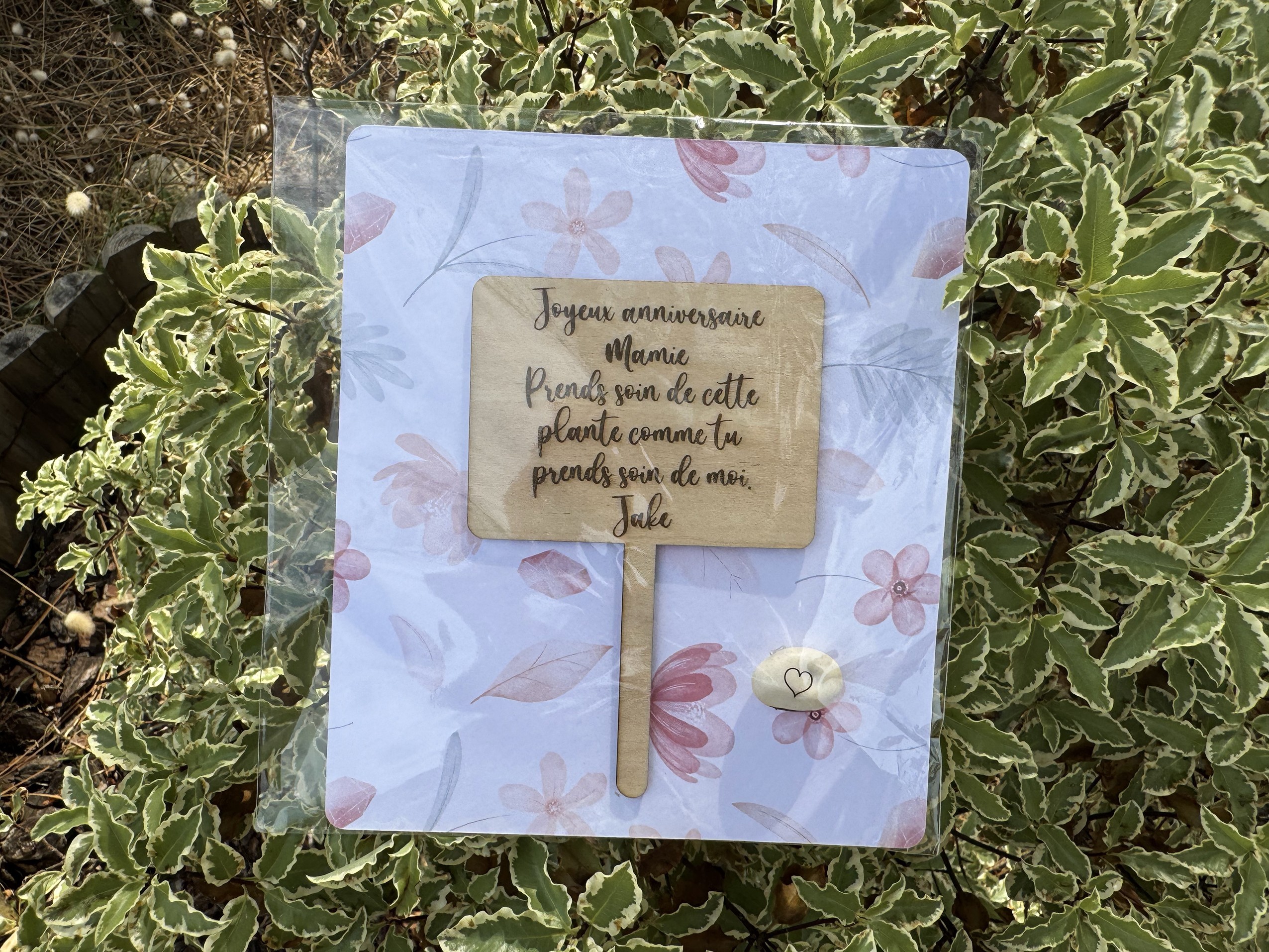 Ajoutez votre touche personnelle en personnalisant le petit panneau avec le texte de votre choix.