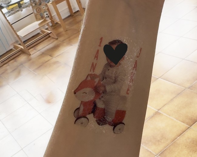 Attention au moment de retirer le tatouage aprés votre évènement ! Passer la zone sous l'eau avec du savon. Frotter délicatement. S'il reste de la colle, ne pas insister en frottant plus fort, mais passer plutôt un coup de produit type eau écarlate. Le collant se retira plus facilement comme cela.