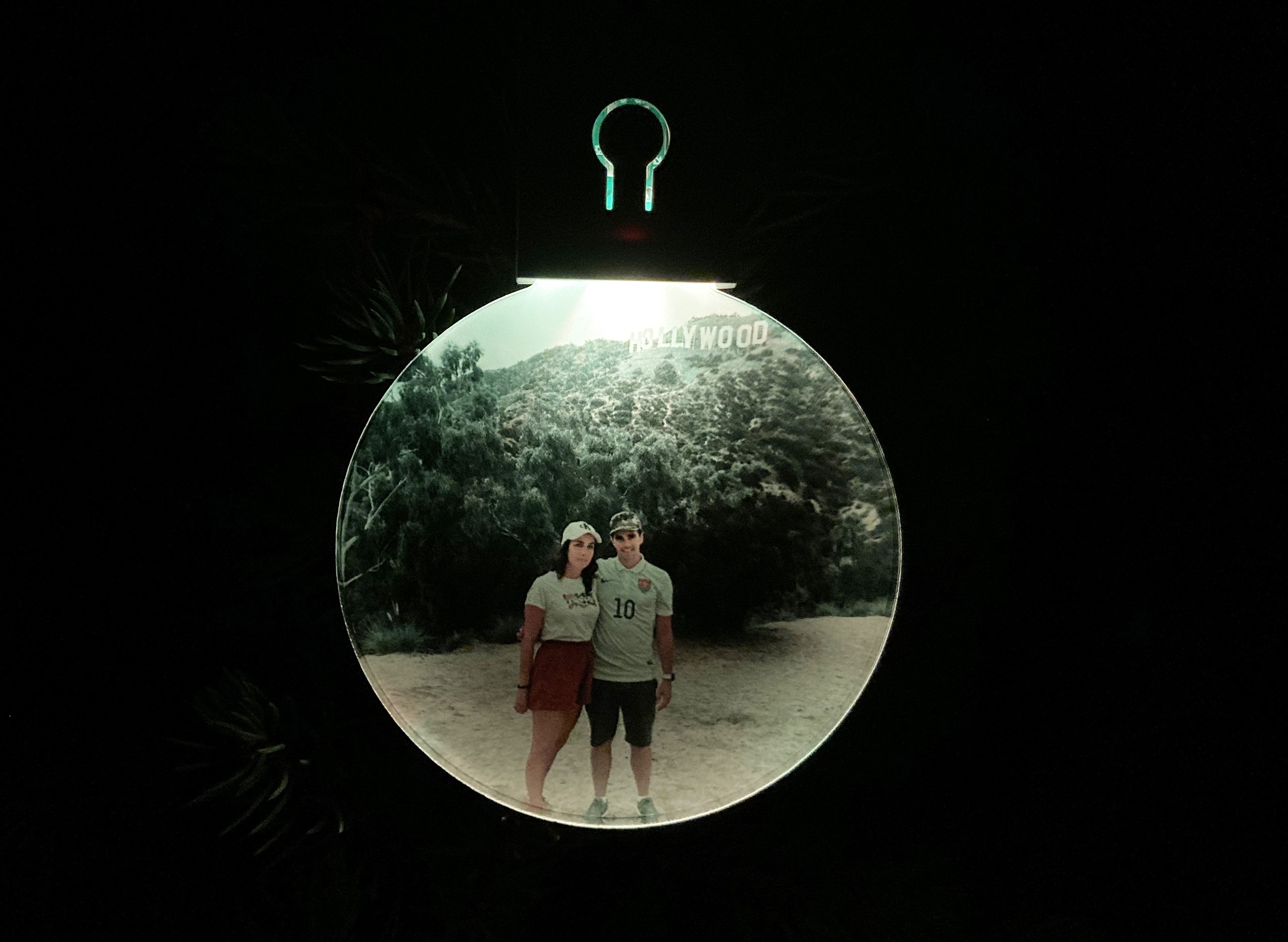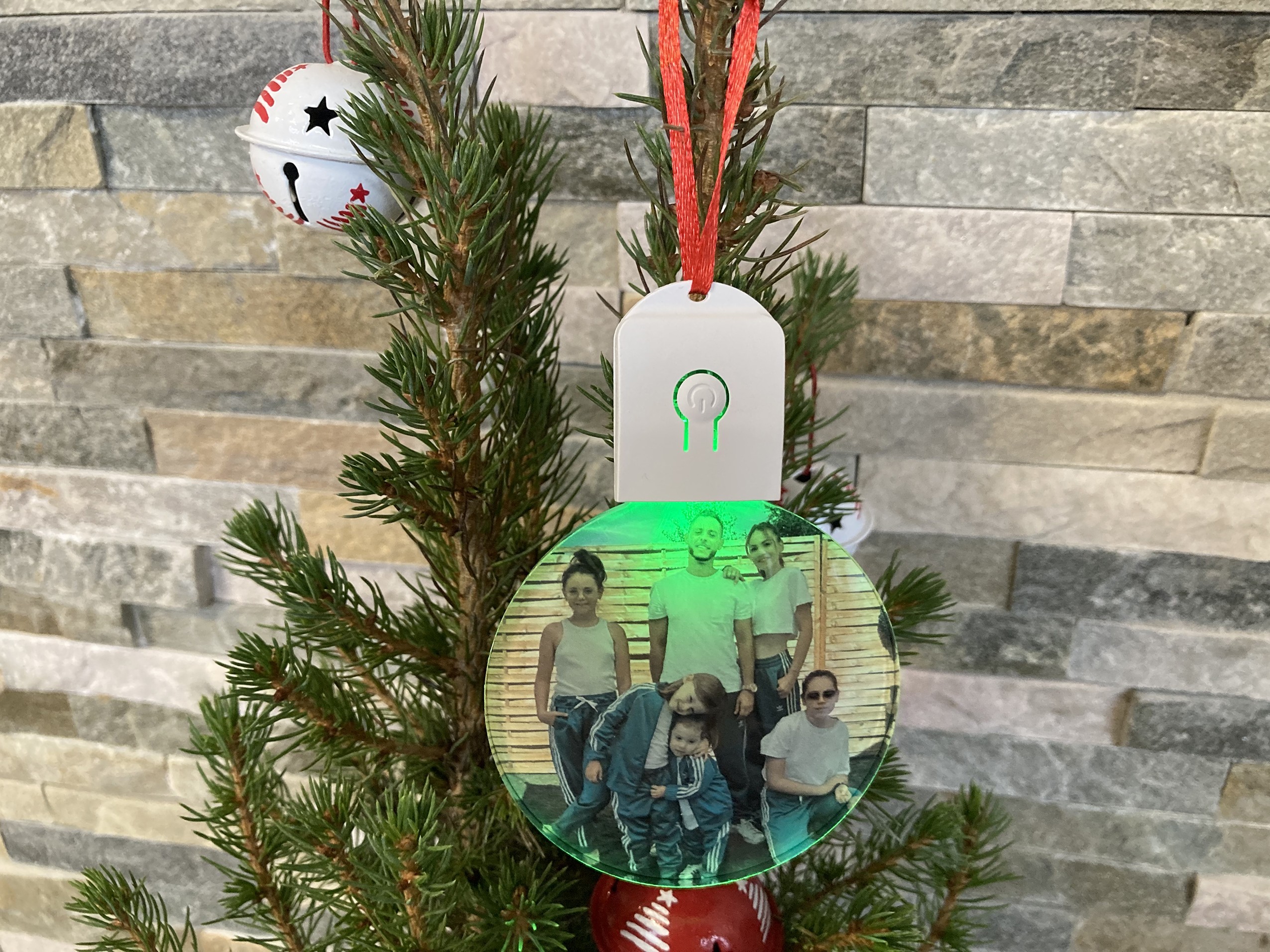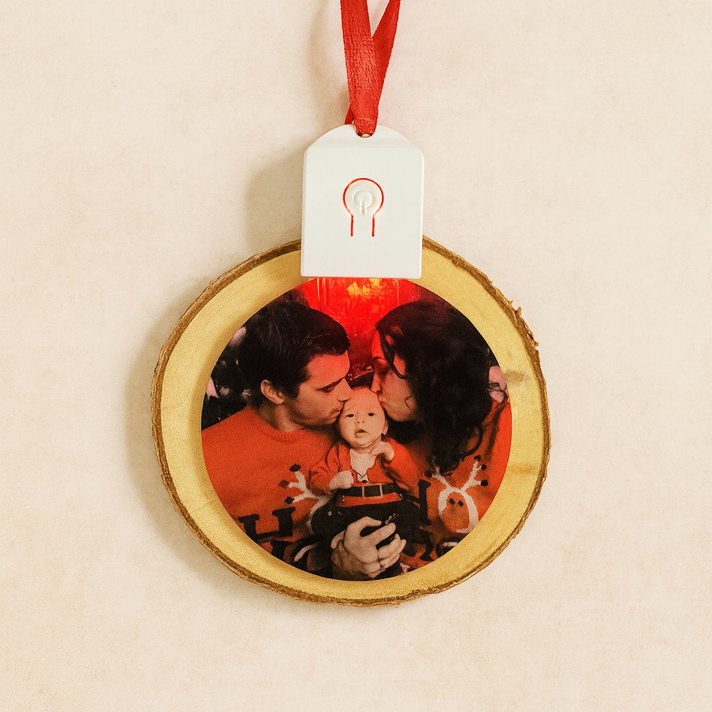 Cette décoration est à personnaliser avec la photo de votre choix. Elle contient un systéme lumineux pour éclairer votre sapin !