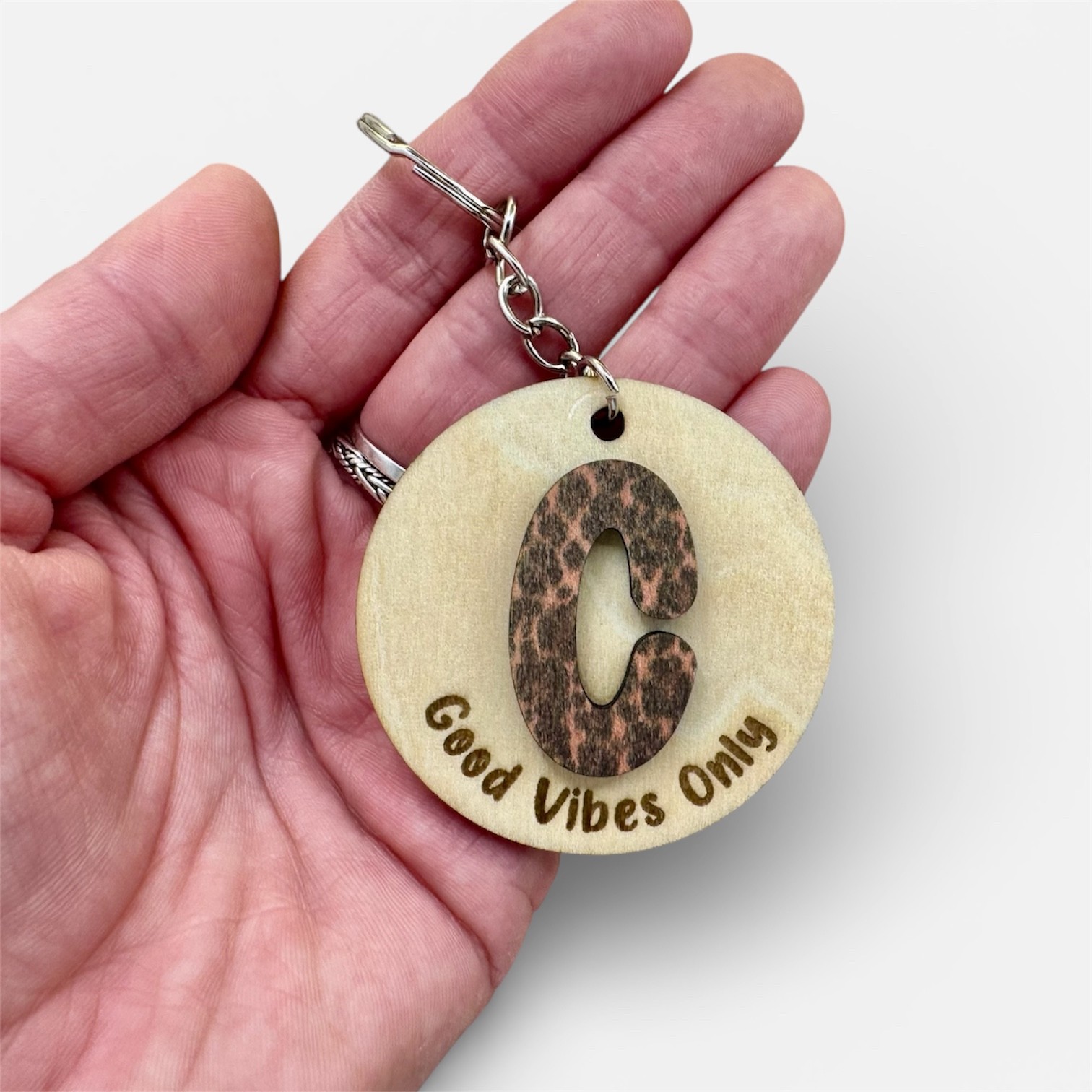- La lettre/forme au millieu du porte cles est ajoutée au dessus pour donner du relief.
