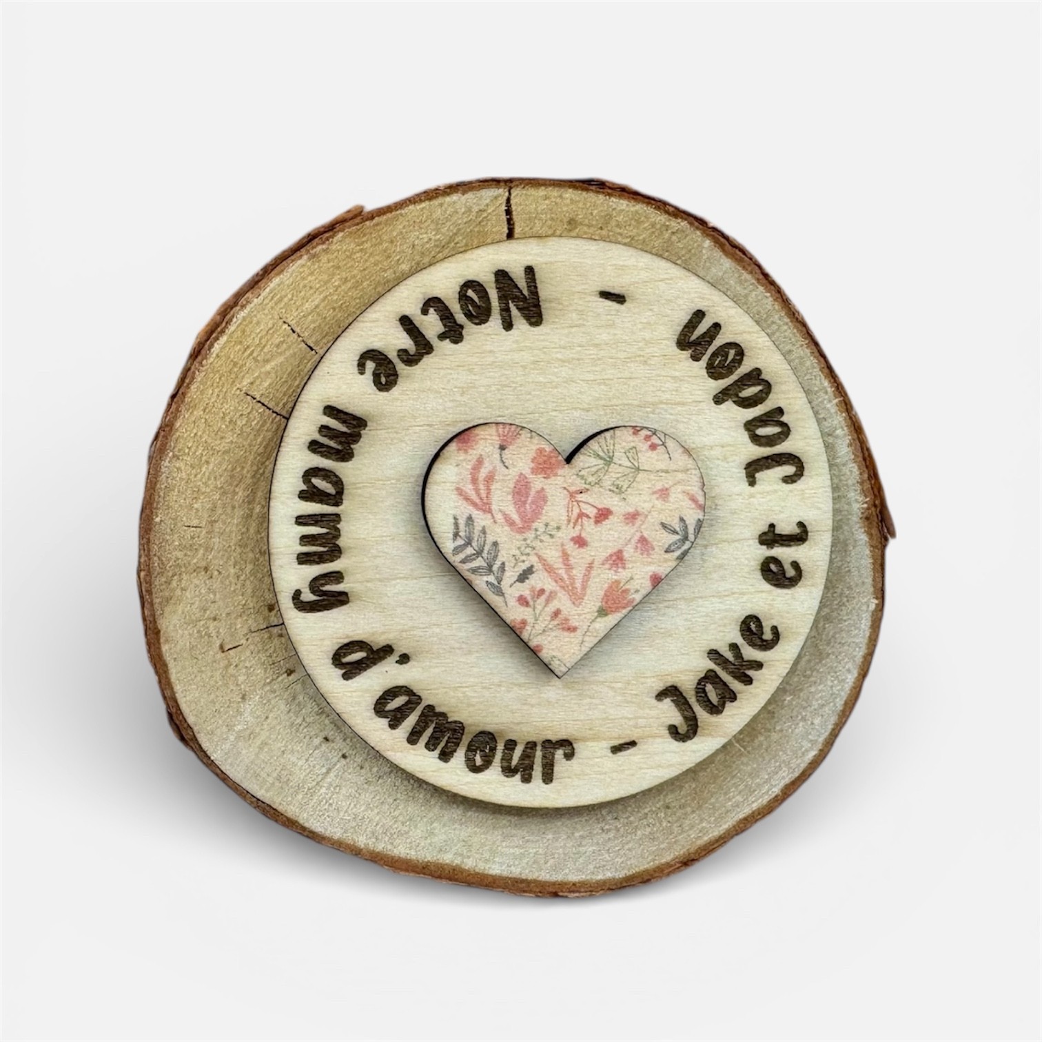 - Texte/prénoms en bas. Selon le nombre de caractére, le texte peut faire le tour du porte clés.