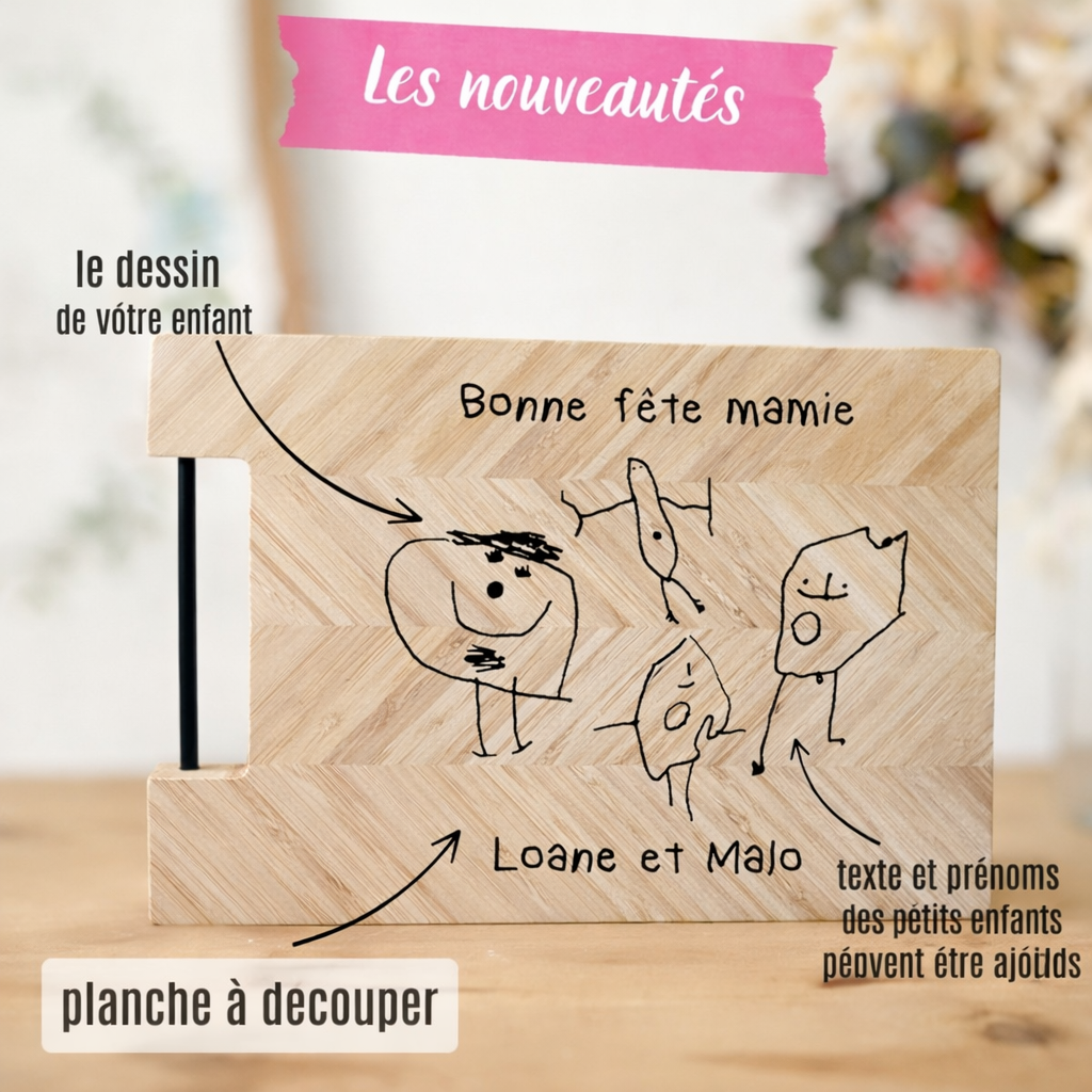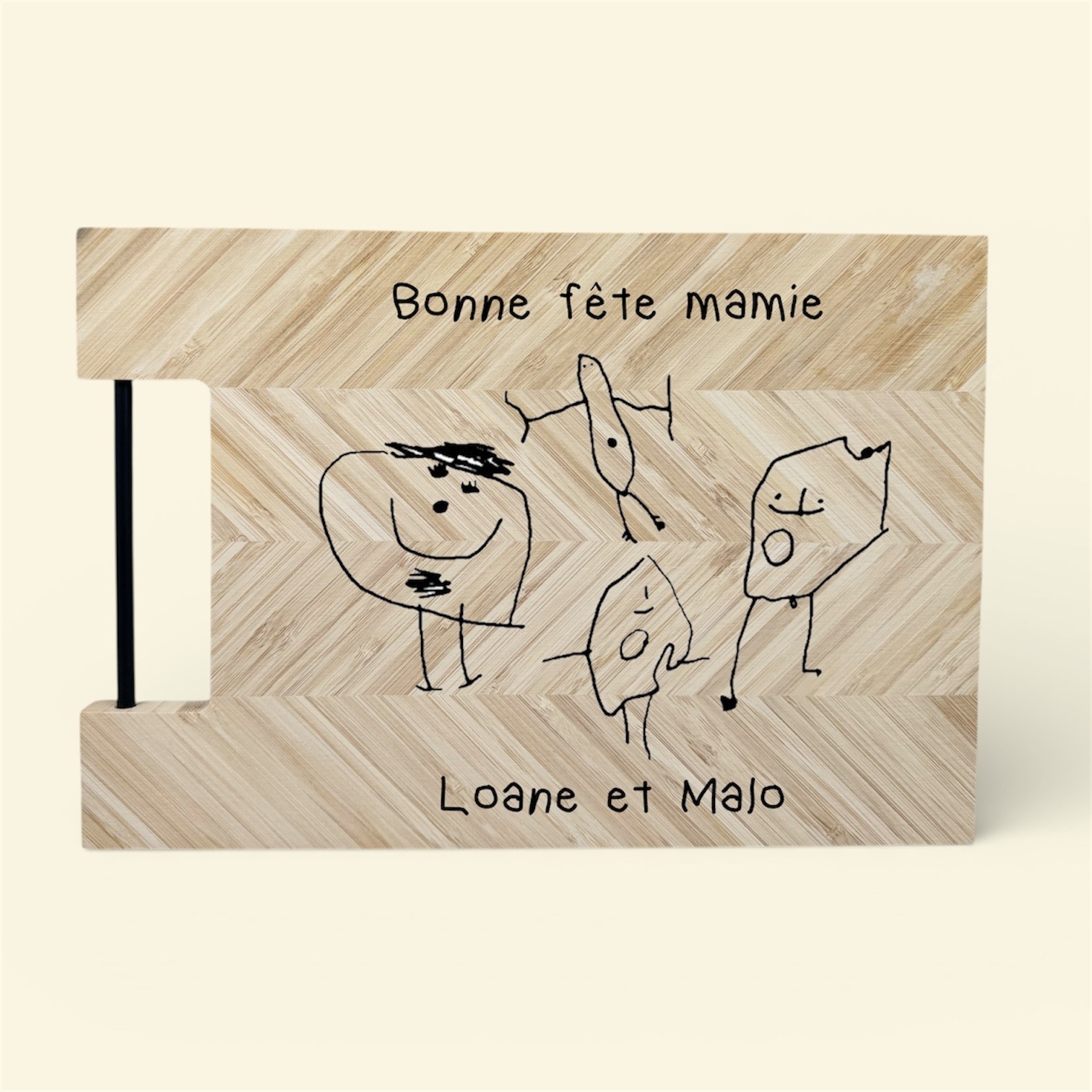 - Votre dessin est a envoyer par e-mail à contact@comvosvoulez.fr Le dessin sera transformé en noir et blanc et simplifié pour pouvoir être gravé sur la planche.