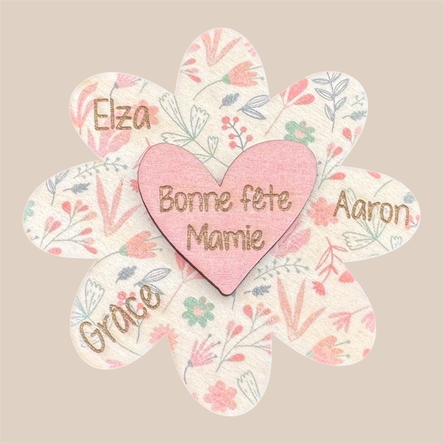 - Le texte souhaité sur le coeur rose ;
