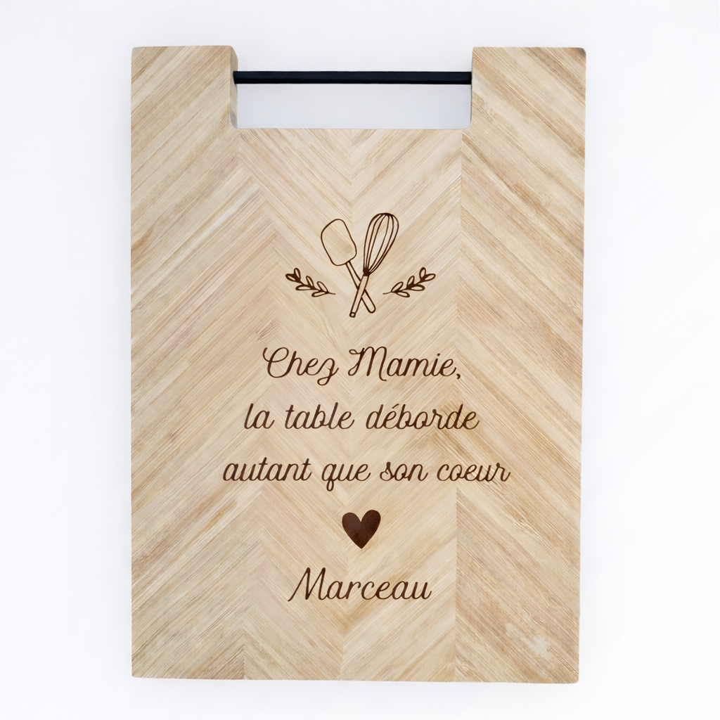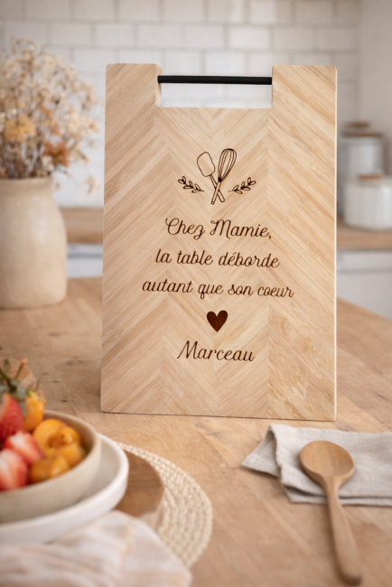 - Personnalisation au laser. La personnalisation est donc encrée dans le bois.
