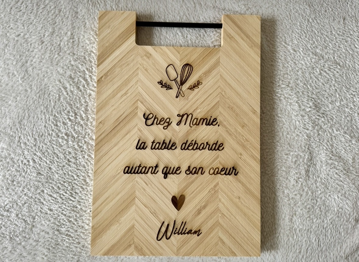 - Personnalisation au laser. La personnalisation est donc encrée dans le bois.